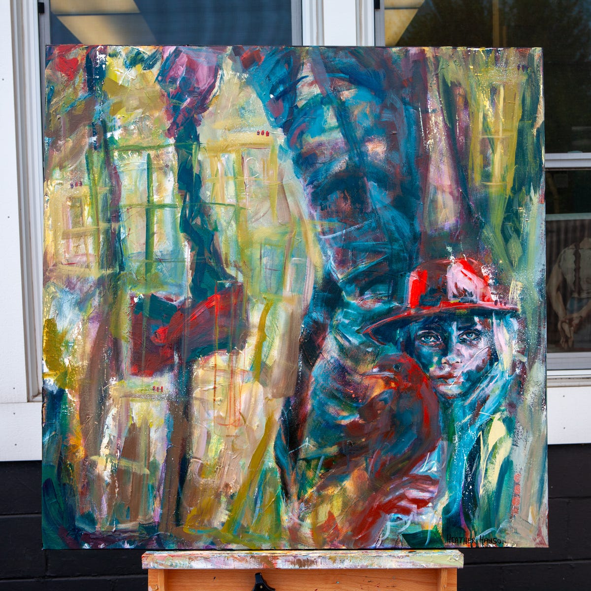 36x36", acrylic and mixed media on canvas, Heather Hanson, Artist